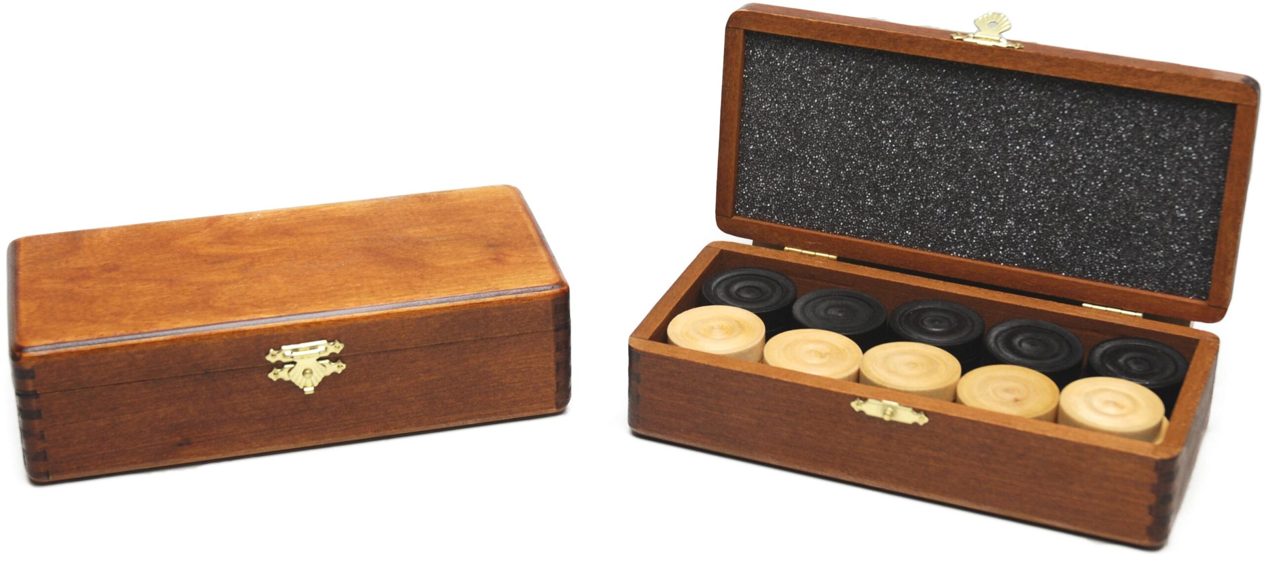 Damsten.blank/zw.in bruin hout klap-kist