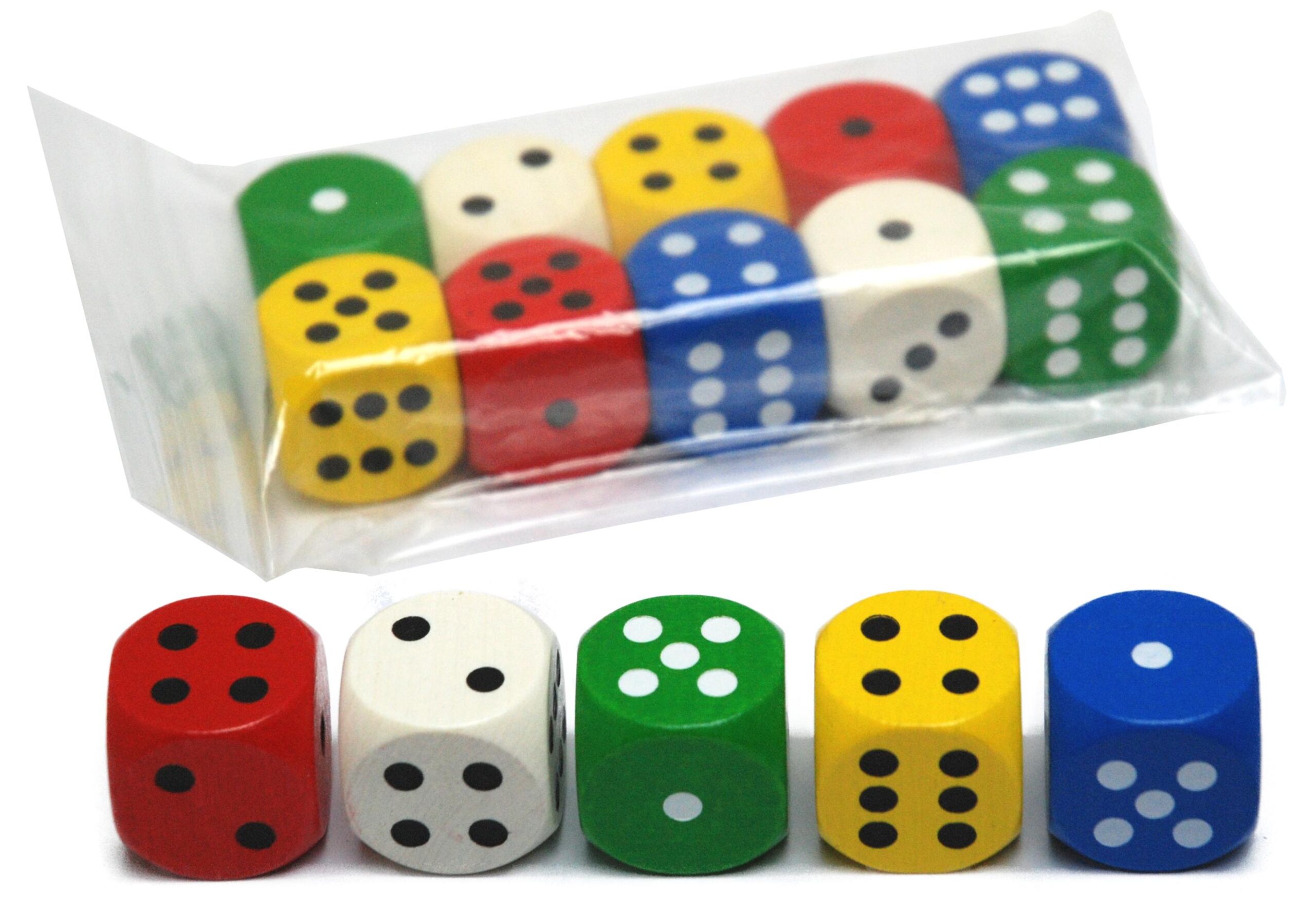 Dobbelsteen 25 mm.hout 5 kleur ass.VE10