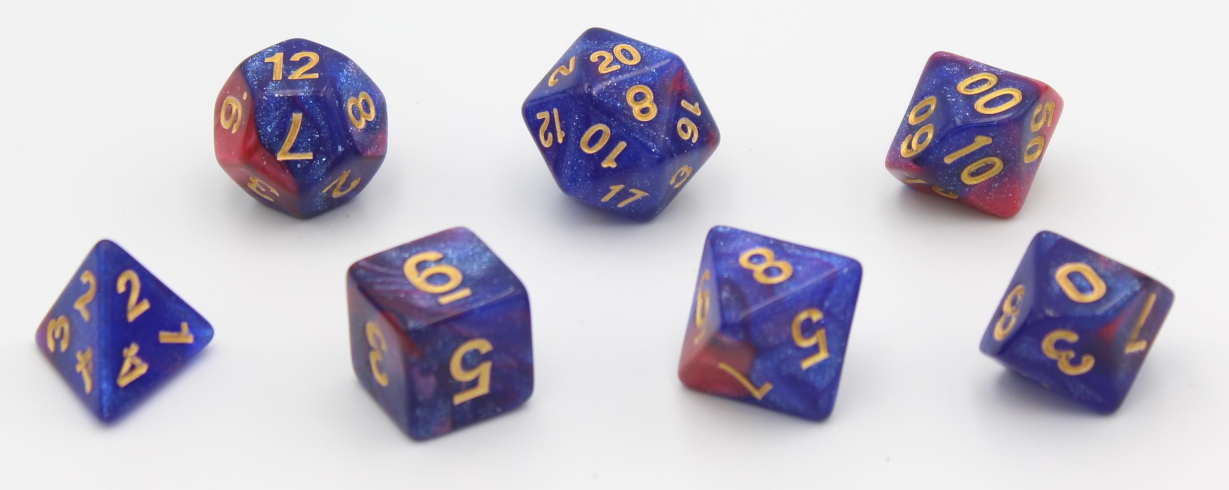 Dobbelstenen Stardust Blauw/Rood 7set Br