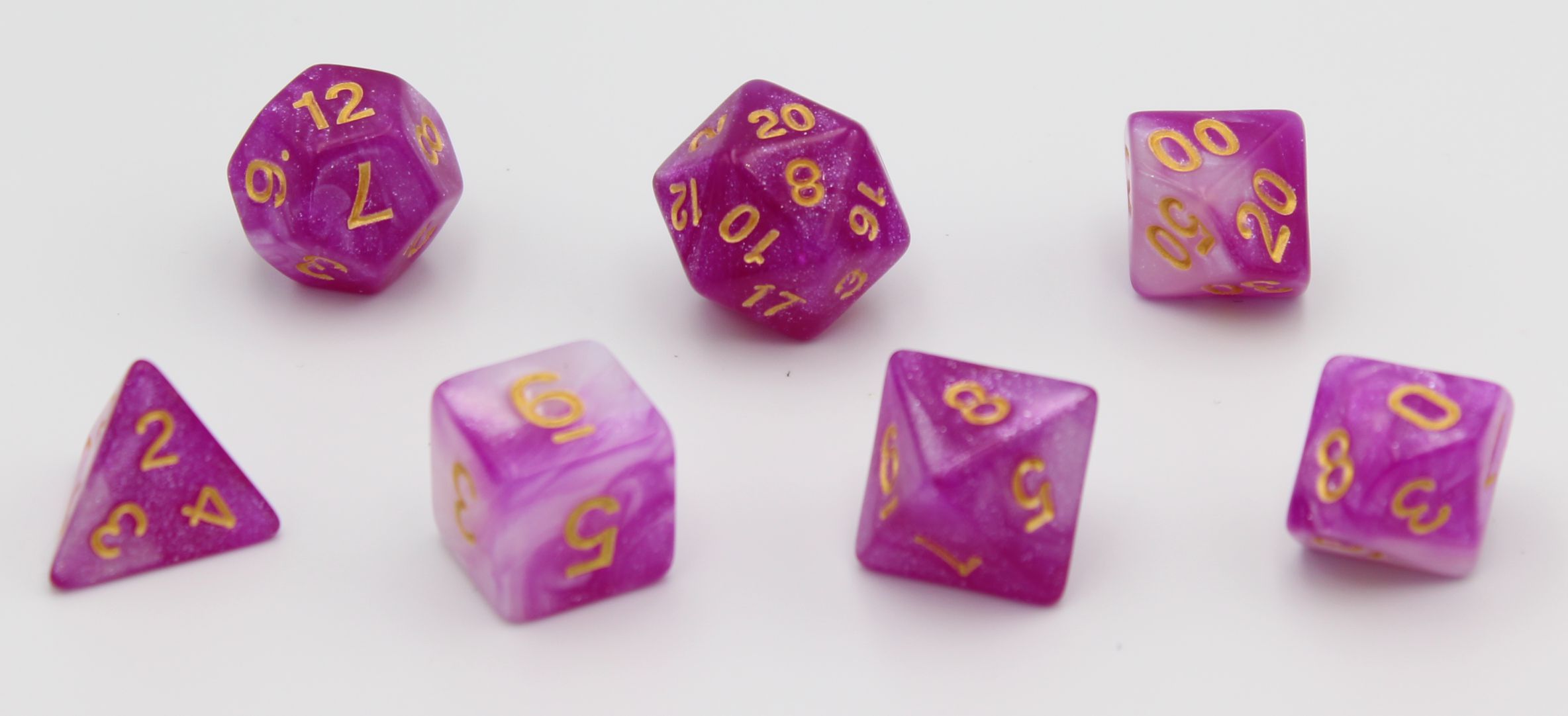 Dobbelstenen Stardust Paars/Wit 7set Bri