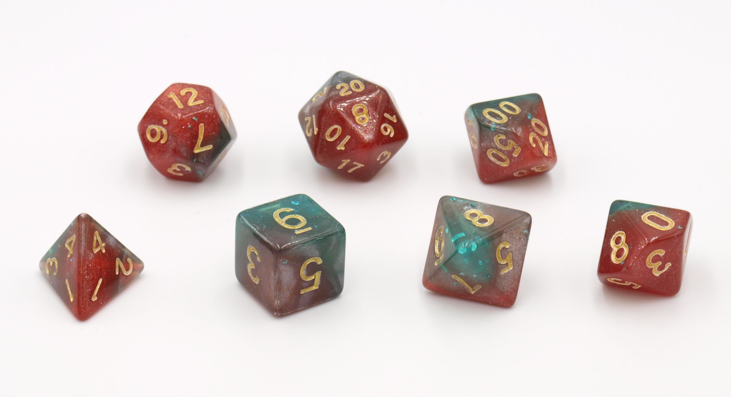 Dobbelstenen Stardust Rood/Groen 7set