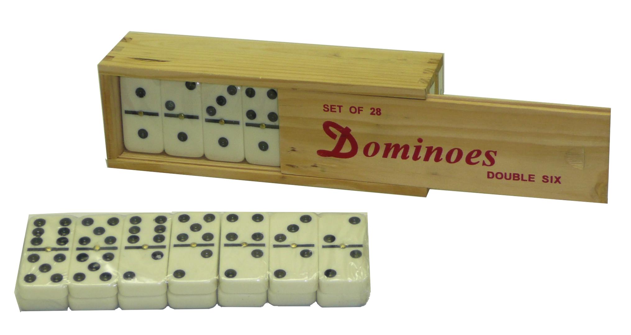Domino dubbel 6 smal m.pen/wit st. kist