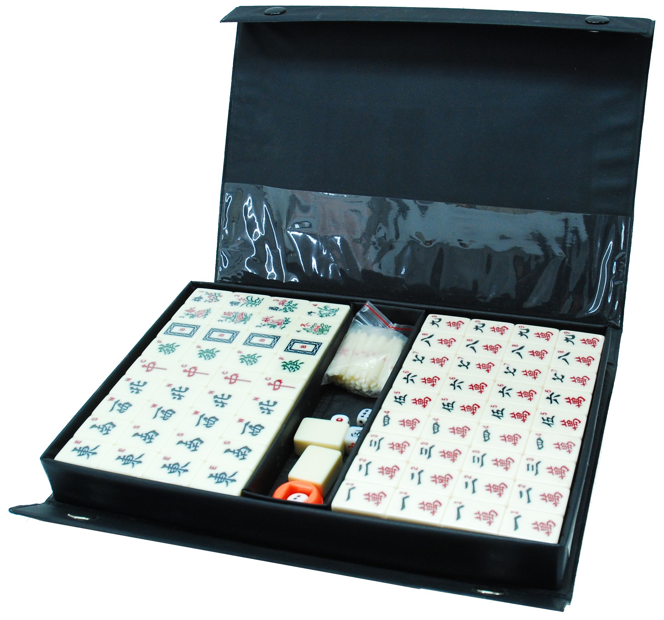 Mah-Jong Kunststof Stenen zw.vinyl koff.